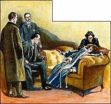 “I am the wife of Sir Eustace Brackenstall. I have been married about a year. I suppose that it is no use my attempting to conceal that our marriage has not been a happy one. I fear that all our neighbours would tell you that, even if I were to attempt to deny it. Perhaps the fault may be partly mine. I was brought up in the freer, less conventional atmosphere of South Australia, and this English life, with its proprieties and its primness, is not congenial to me. But the main reason lies in the one fact, which is notorious to everyone, and that is that Sir Eustace was a confirmed drunkard. To be with such a man for an hour is unpleasant. Can you imagine what it means for a sensitive and high-spirited woman to be tied to him for day and night? It is a sacrilege, a crime, a villainy to hold that such a marriage is binding. I say that these monstrous laws of yours will bring a curse upon the land - God will not let such wickedness endure.” For an instant she sat up, her cheeks flushed, and her eyes blazing from under the terrible mark upon her brow. Then the strong, soothing hand of the austere maid drew her head down on to the cushion, and the wild anger died away into passionate sobbing. At last she continued: