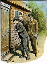 The outhouse was the simplest of dwellings, wooden-walled, shingle-roofed, one window beside the door and one on the farther side. Stanley Hopkins drew the key from his pocket and had stooped to the lock, when he paused with a look of attention and surprise upon his face.