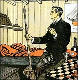Stanley Hopkins led us first to the house, where he introduced us to a haggard, gray-haired woman, the widow of the murdered man, whose gaunt and deep-lined face, with the furtive look of terror in the depths of her red-rimmed eyes, told of the years of hardship and ill-usage which she had endured. With her was her daughter, a pale, fair-haired girl, whose eyes blazed defiantly at us as she told us that she was glad that her father was dead, and that she blessed the hand which had struck him down. It was a terrible household that Black Peter Carey had made for himself, and it was with a sense of relief that we found ourselves in the sunlight again and making our way along a path which had been worn across the fields by the feet of the dead man.